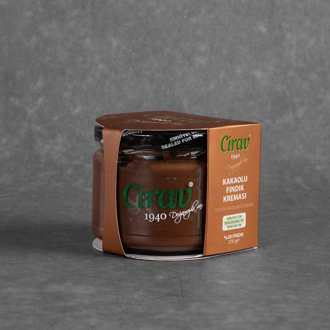 Cirav Kakaolu Fındık Krema, bakır tavalarda kavrulan fındıklar ile pancar şekerinden elde edilen ham şekerin bir araya gelmesiyle üretilir. Katkı maddesi ve glüten içermeyen, tamamen organik bir krema olan Cirav Kakaolu Fındık Kreması, özellikle zengin kahvaltı menülerinde ve gurme tatlılarda doğal bir lezzet katkısı olarak kullanılabilir. Cirav Kakaolu Fındık Kreması, fındığın ve kakaonun faydalarını da bir araya getirir. Fındığın yoğun E vitamini ve yağ içeriği kalp sağlığını korumaya ve cildi beslemeye yardımcı olurken, kakao ise güne zinde başlamanın anahtarı olabilir.
