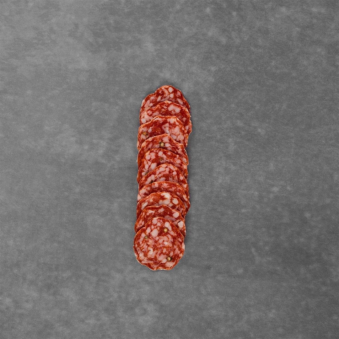 Napoli salamı, baharatlı bir tada ve sert bir dokuya sahiptir. Akdeniz bölgesinin tüm zenginliğini lezzetinde barındıran ve İtalyan kahvaltılarının vazgeçilmezi olan Napoli salamı, uzun raf ömrüne sahip olan dayanıklı bir domuz eti çeşididir.