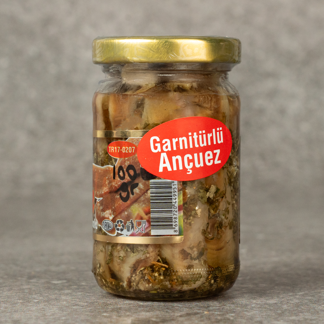 Selahattin Kemerli Garnitürlü Zeytinyağlı Ançuez 100g, zeytinyağı ve özenle seçilmiş garnitürlerle zenginleştirilmiş özel bir lezzettir. Ançuezin yoğun aroması, garnitürlerle dengelenerek daha rafine bir tat sunar. Meze tabaklarında şık bir sunum sağlar ve özel davet sofralarına farklılık katar.